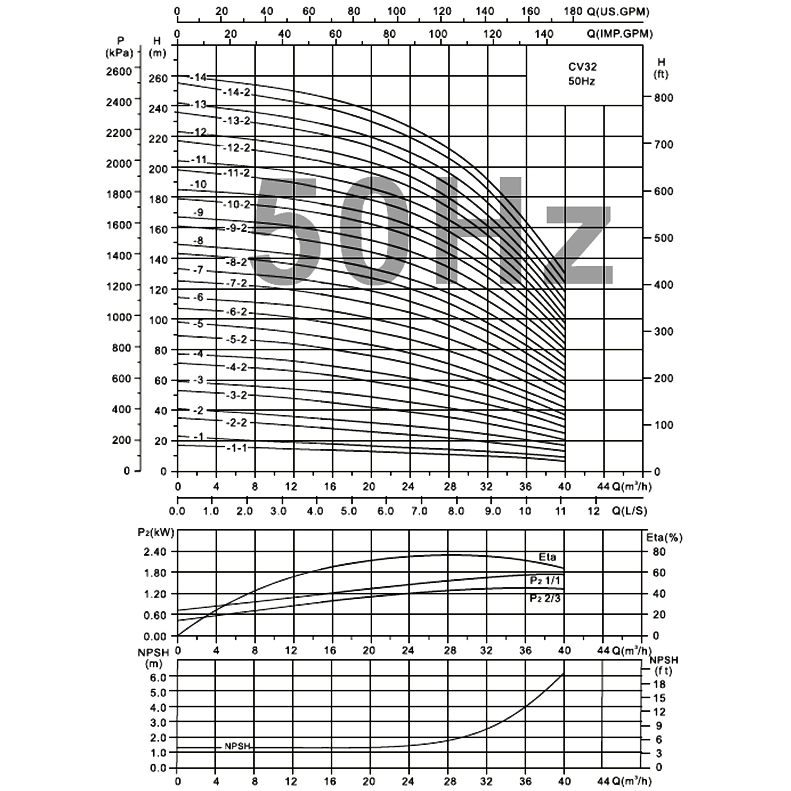Product Code: Unoflow UVP32-20: Vertical Multistage Pump, Power