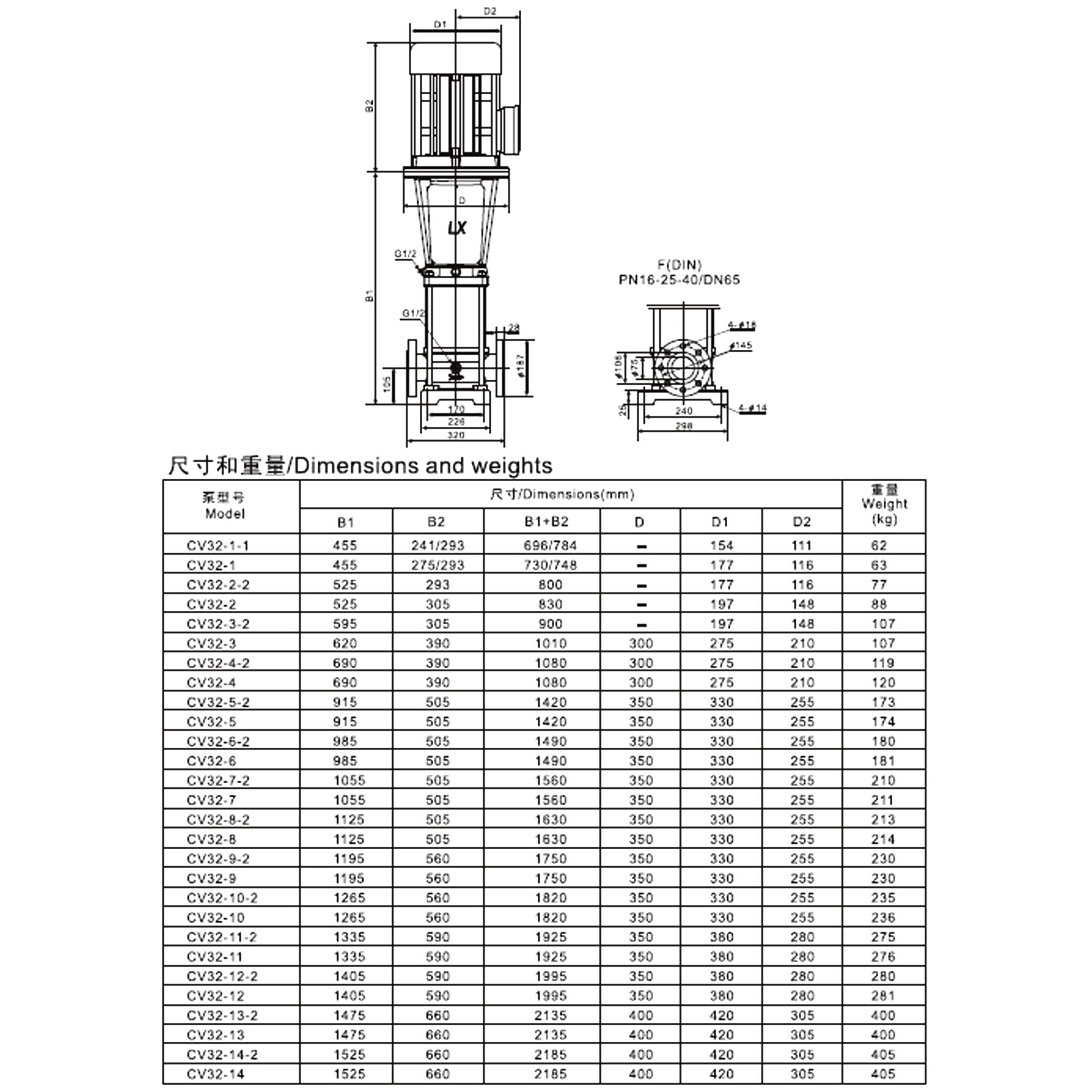 Unoflow UVP32-20: Vertical Multistage Pump, Power 4000W, 3Ø, Flow 666L/min, Head 36m, Inlet x Outlet